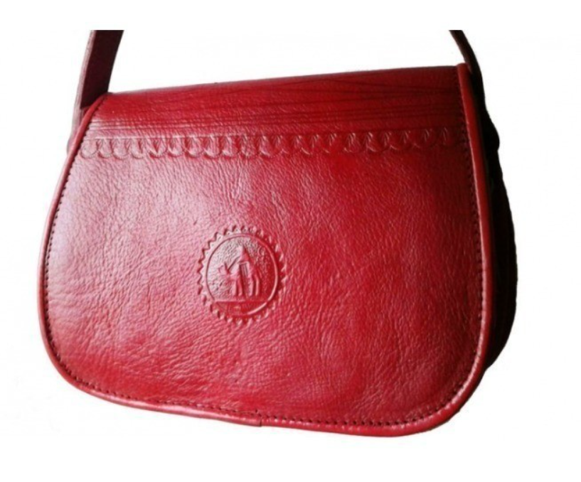 โหมด:กระเป๋าสะพายสไตล์โมร็อกโกคลาสสิกสีแดงทำจากหนังธรรมชาติ