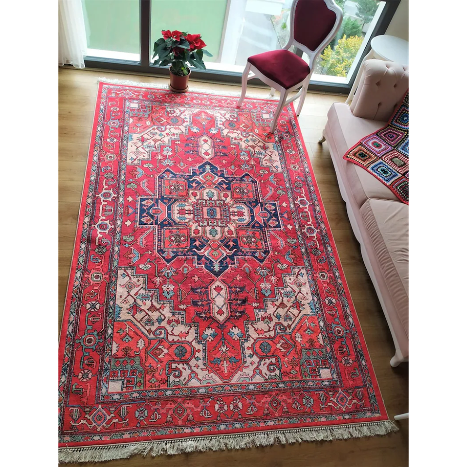 พรมผ้าฝ้ายทอสไตล์ Boho สีแดงและพรมสำหรับทางเดินและห้องนั่งเล่น