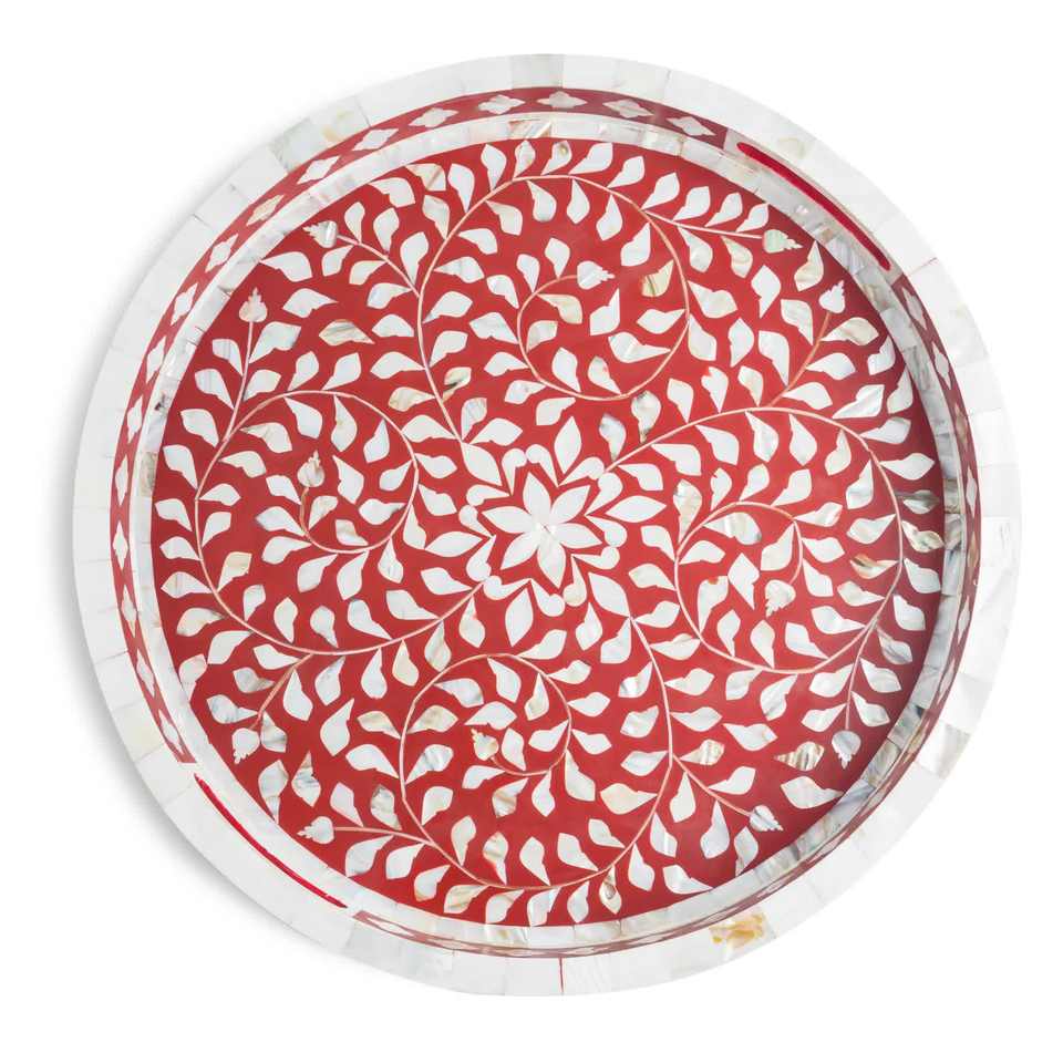 ถาดโลหะทำมือ2025อาหารและเครื่องดื่มแบบฝังกระดูกสีแดง