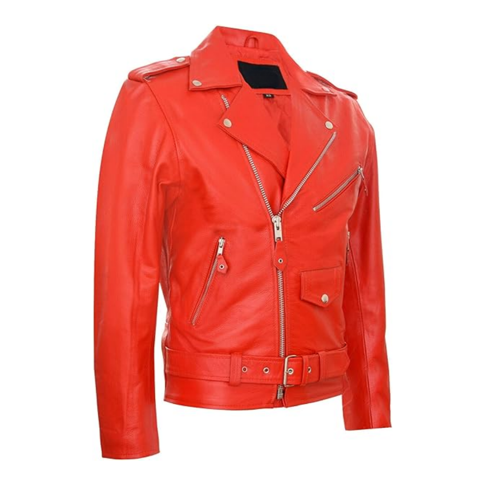 เสื้อแจ็คเก็ตหนังดีไซน์เนอร์สีแดงสำหรับผู้ชาย 100% โพลีเอสเตอร์ เสื้อแจ็คเก็ตมอเตอร์ไซค์ ทันสมัย แจ็คเก็ตหนังแบบสั่งทำพิเศษ ระบายอากาศได้ดี