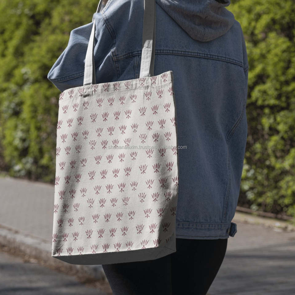 กระเป๋าโท้ทพิมพ์ลายด้วยมือสีแดง ลายดอกไม้แบบเจียปุรี เหมาะสำหรับใส่ของช้อปปิ้งและใช้ในชีวิตประจำวัน