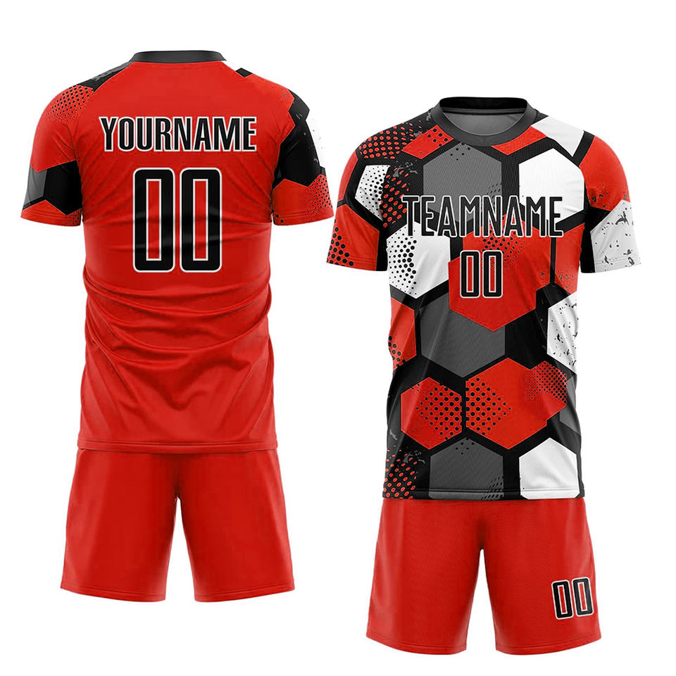 เสื้อฟุตบอลแขนสั้นสีแดง พิมพ์ลายดิจิทัล ผ้าโพลีเอสเตอร์ 100% แห้งเร็ว ระบายอากาศได้ดี สำหรับผู้ชาย