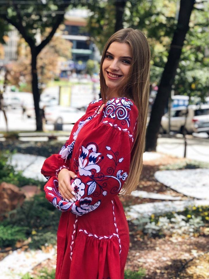 สีแดงยูเครนแบบดั้งเดิมชุดที่สวยงามสไตล์ชุดแขนยาวผ้าลินินคุณภาพสูง