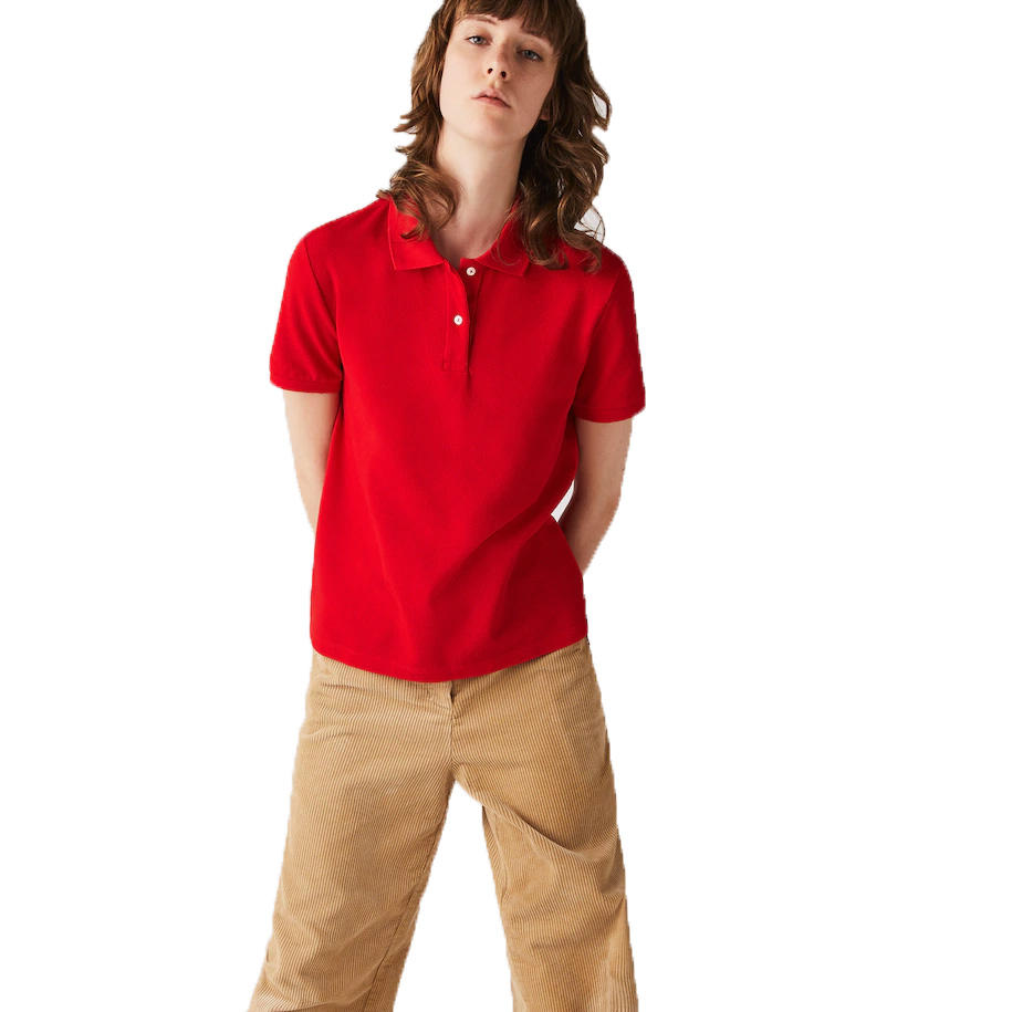 เสื้อโปโลสีแดงของผู้หญิงเสื้อแขนสั้นทำจากผ้าฝ้ายสำหรับสุภาพสตรีในราคาต่ำสุด