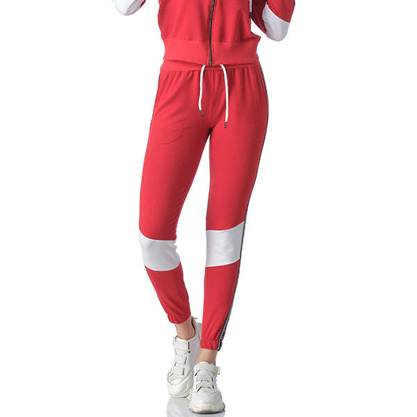 ชุดวอร์มผู้หญิงสีแดงมีกระเป๋าข้างมีซิปสีส้ม