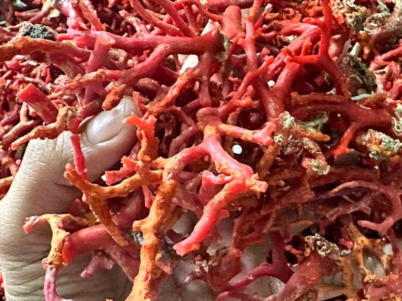 ปะการังแดงหยาบปะการังเนื้อหยาบธรรมชาติจากอิตาลีแท่งปะการังแดงที่ไม่ขัดเงา100%