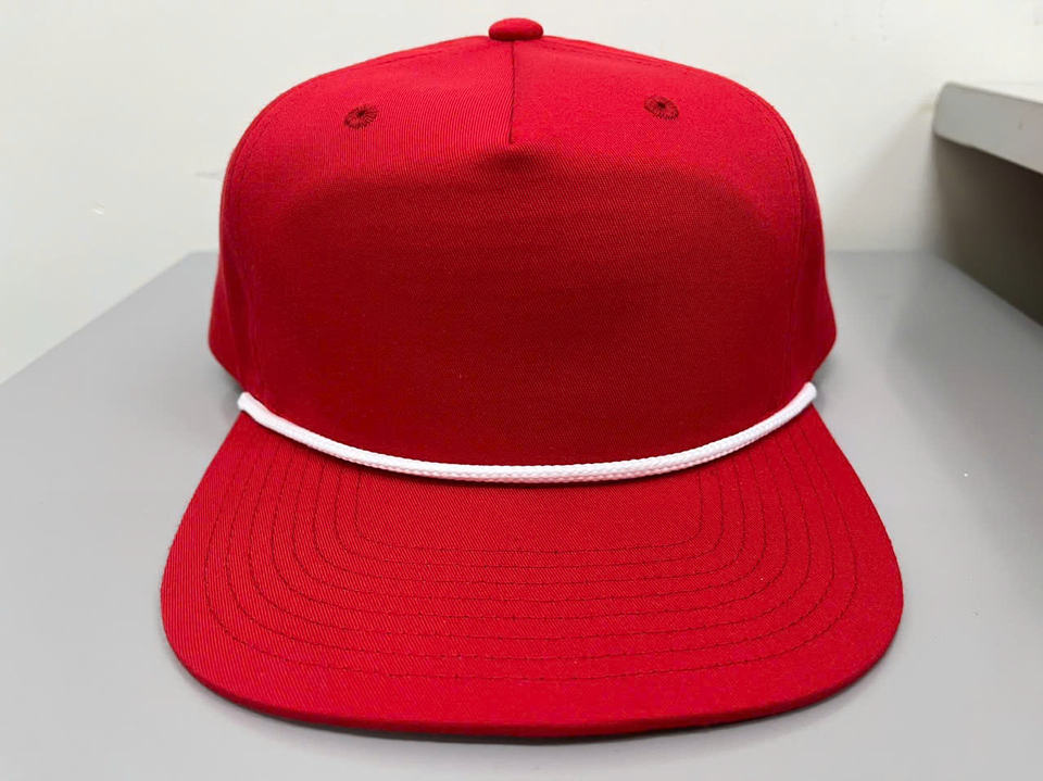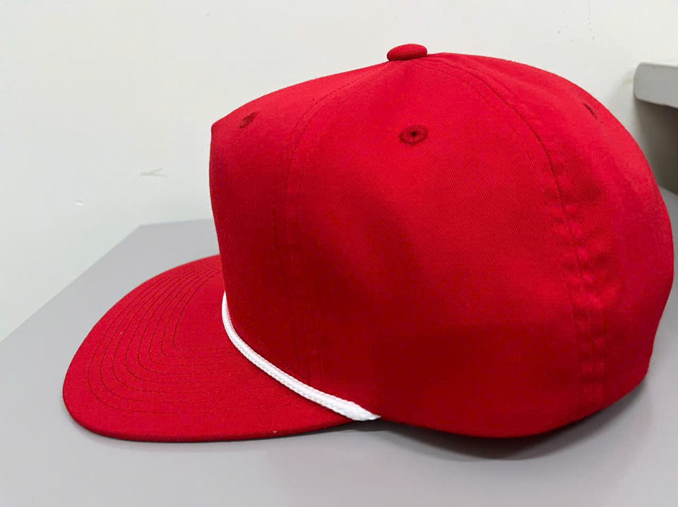 หมวกแก๊ปทรงทรัคเกอร์ 5 ชิ้น ผ้าฝ้าย/ไนลอนสีแดง ปักลายสัตว์ตามสั่ง พร้อมเชือก ขายส่งแบบเปล่า หมวกแบบ Snapback รุ่น 256 พร้อมเชือก
