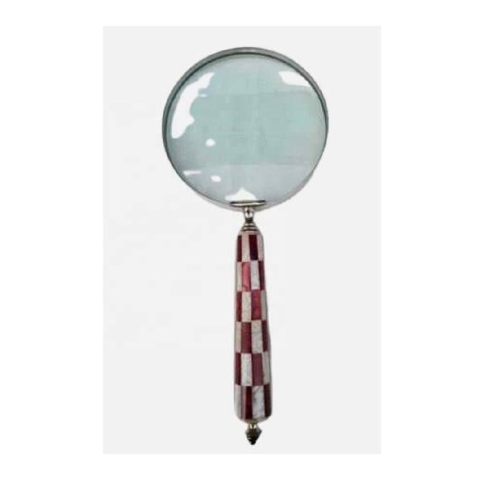 แว่นขยายสีแดงและครีมเปลือกหอยมุกที่จับหนังสือนิตยสารเครื่องอ่านหนังสือพิมพ์โต๊ะสำนักงานอุปกรณ์ของขวัญสำหรับผู้ชาย
