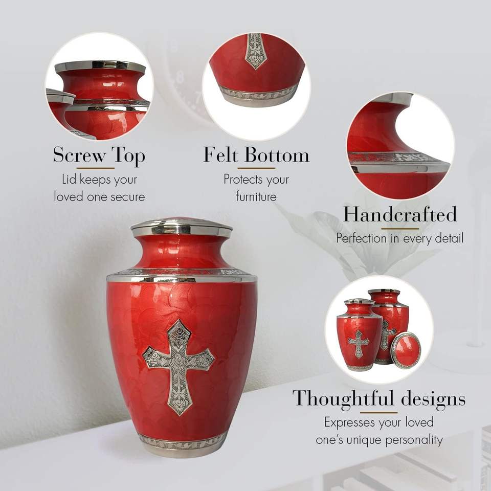 โกศบรรจุอัฐิสำหรับผู้หญิง ดีไซน์ทันสมัยแบบอเมริกัน สีแดง ขององค์การกาชาดอเมริกา เป็นมิตรกับสิ่งแวดล้อม ปรับแต่งได้ ใช้สำหรับงานศพและเป็นที่เก็บอัฐิ