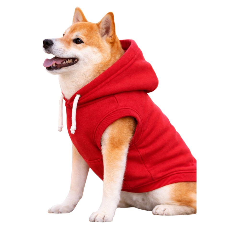 เสื้อฮู้ดสุนัขสีแดงสด ผ้าสีพื้น อบอุ่น สวมใส่สบาย ผ้าฟลีซ อุปกรณ์จำเป็นสำหรับฤดูหนาว
