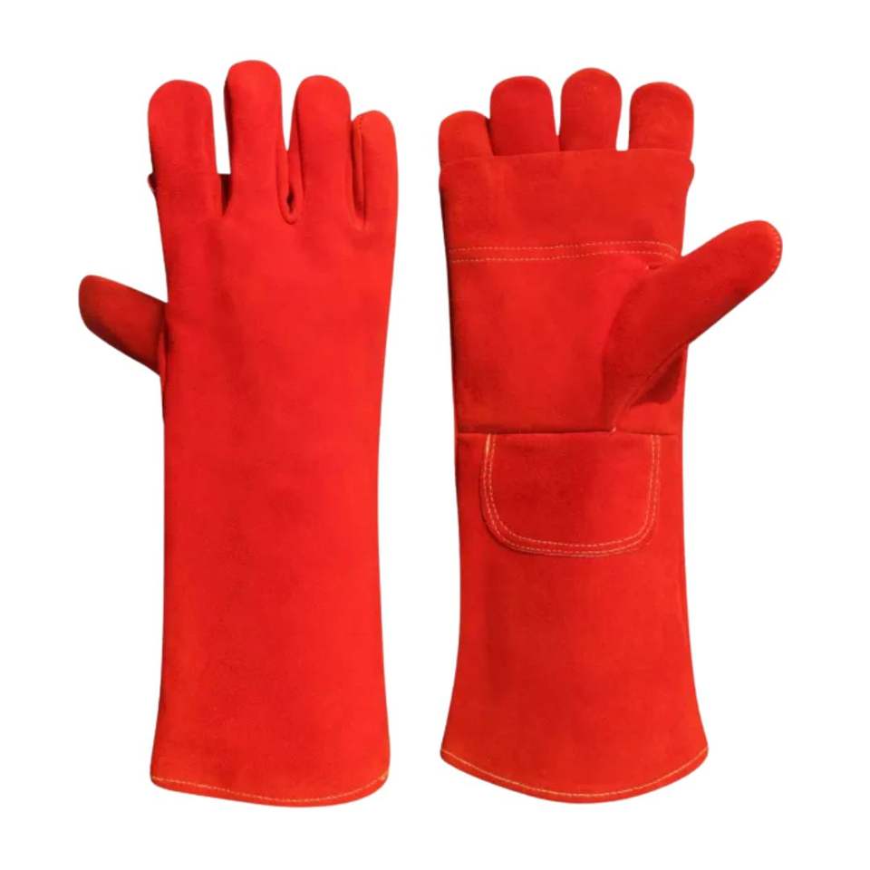 Red Durable Heat Resistance Insulation Arc Welding Long Cuff Safety Split PU Leather Workout Welder Safety Gloves