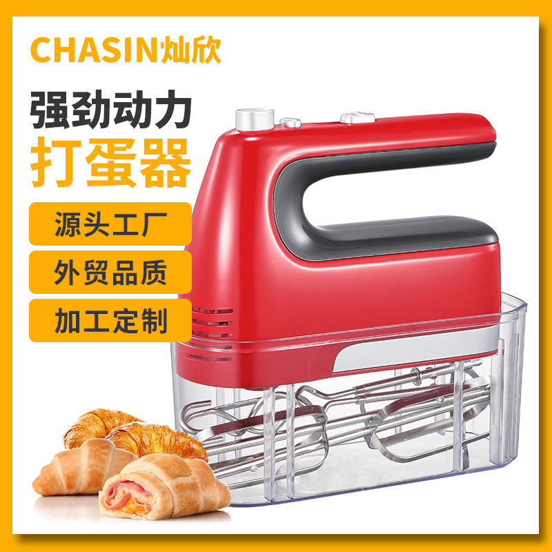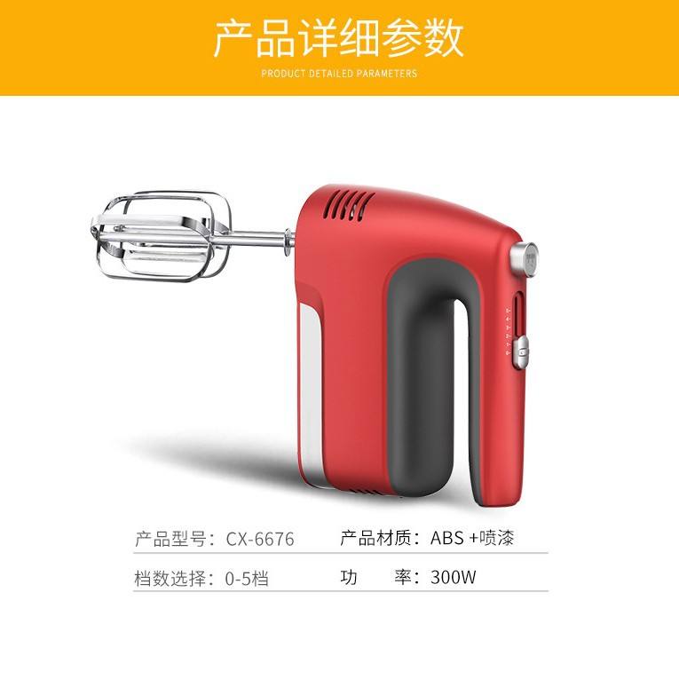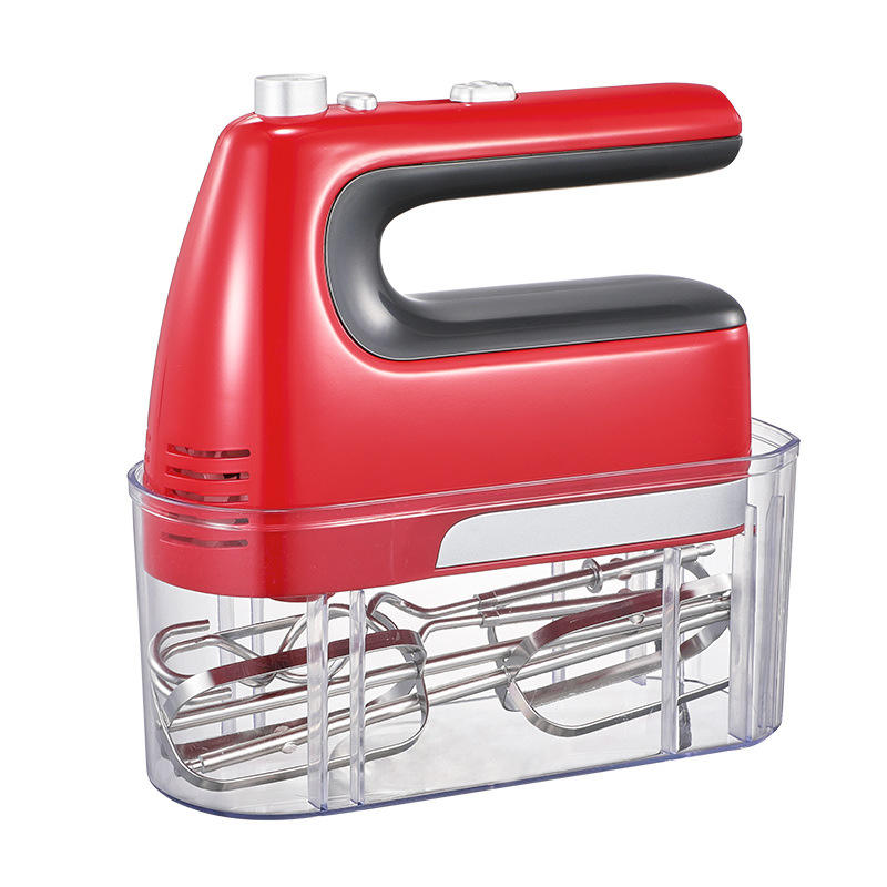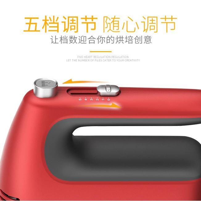 เครื่องผสมอาหารไฟฟ้าสีแดง 300 วัตต์ 5 ระดับความเร็ว พร้อมหัวตีแบบลวด และปุ่มปลดหัวตี สำหรับใช้ในครัว