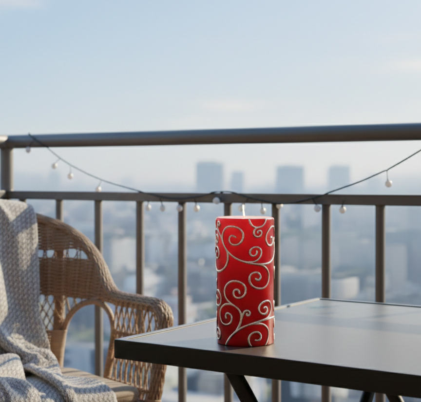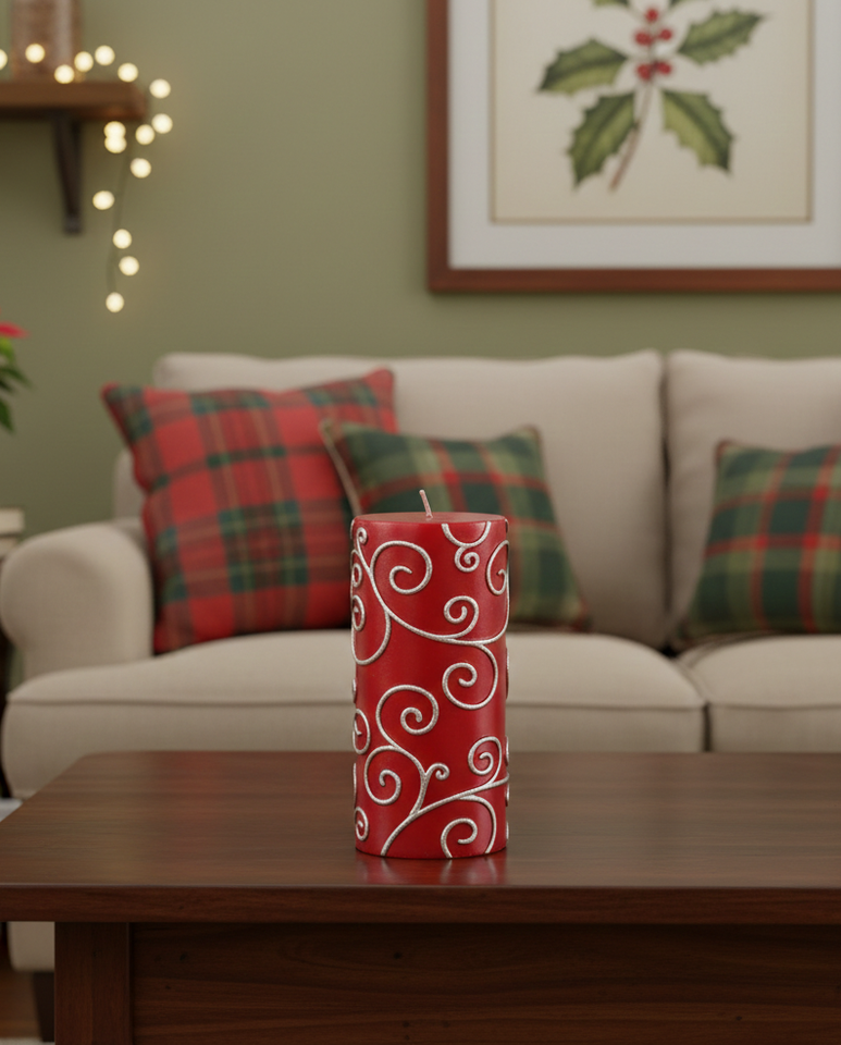 เทียนทรงกระบอกทำมือจากขี้ผึ้งถั่วเหลืองสีแดงลายนูน เป็นมิตรกับสิ่งแวดล้อม ออร์แกนิก เหมาะสำหรับตกแต่งบ้านในเทศกาลต่างๆ เช่น ฮาโลวีน อีสเตอร์ คริสต์มาส