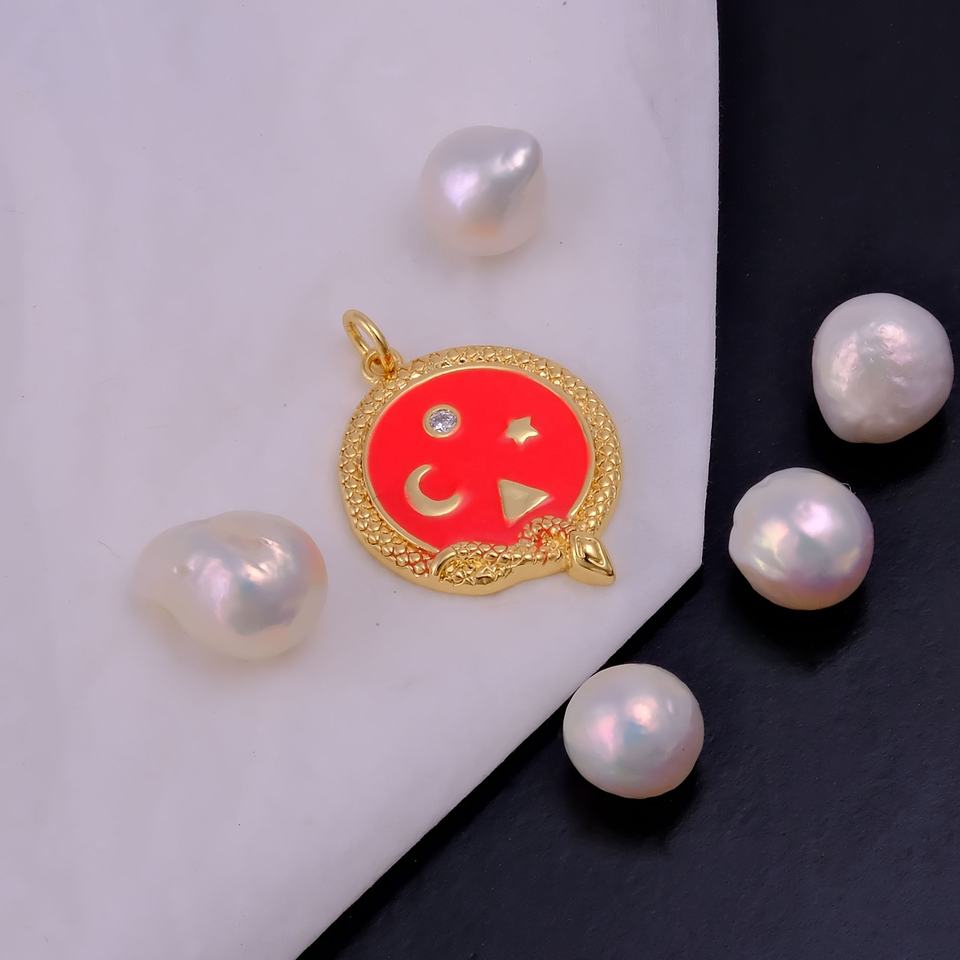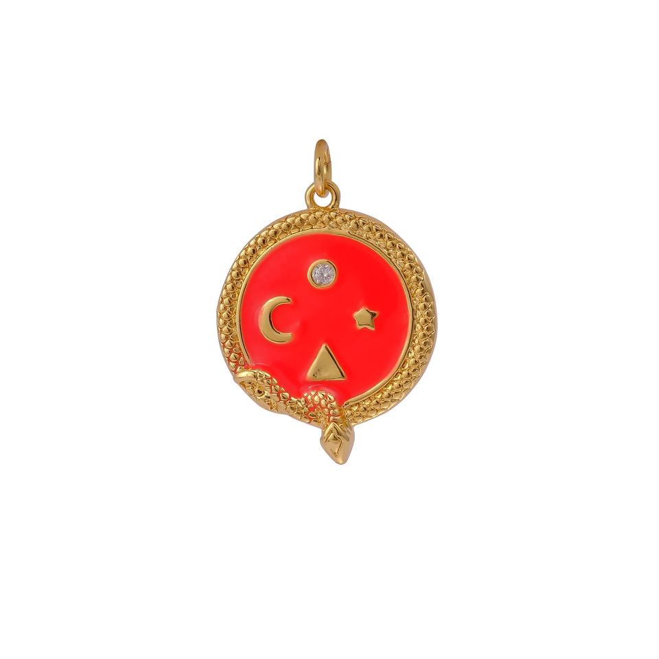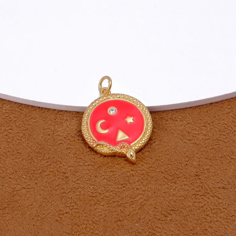 จี้งูกลมเคลือบสีแดงพร้อมหิน CZ ชุบทองเครื่องประดับรูปงูท้องฟ้าสำหรับเป็นของขวัญ