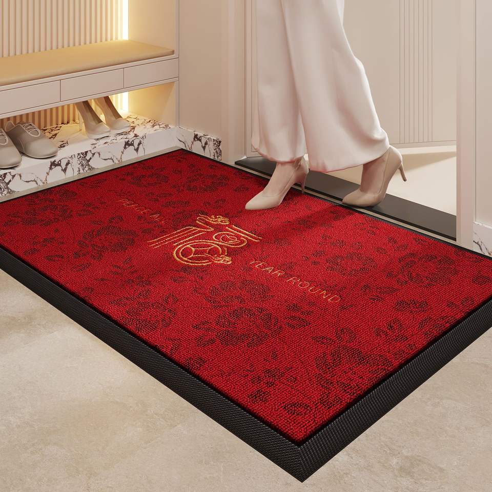 Red Entrance Door Mat Thickened Rubber Anti Slip Indoor Rectangle New Year Festival Decor Hand Washable Entryway Carpet