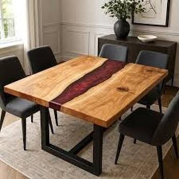 ท็อปโต๊ะเรซิ่นอีพ็อกซี่สีแดงสำหรับบ้าน โต๊ะไม้ศิลปะสำหรับห้องนั่งเล่น โต๊ะประชุมสำนักงาน ท็อปเคาน์เตอร์บาร์