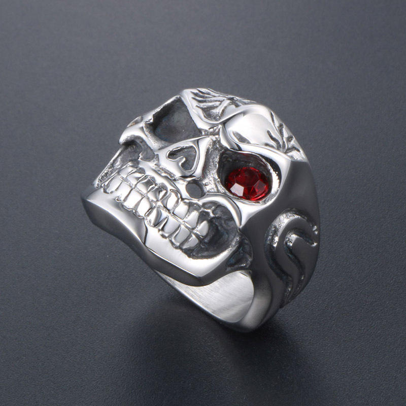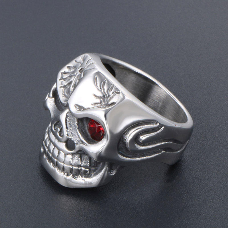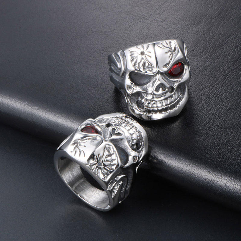 SA898แหวนเหล็กไทเทเนียมรูปหัวกะโหลกตาแดงสำหรับผู้ชายเครื่องประดับสำหรับงานเลี้ยง