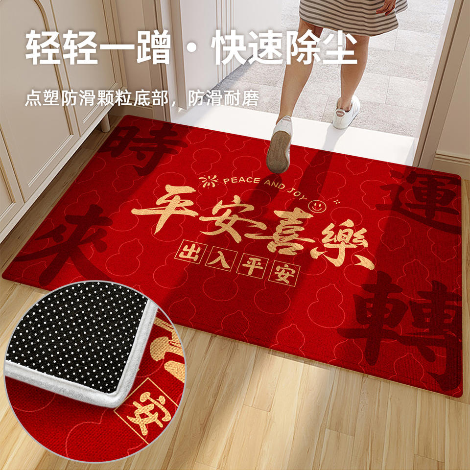 พรมเช็ดเท้าทางเข้าสีแดงสำหรับเทศกาล รูปทรงสี่เหลี่ยมผืนผ้า ทำจากเส้นใยโพลีเอสเตอร์ กันลื่น ใช้ในบ้าน ลายสันติภาพและความสุข