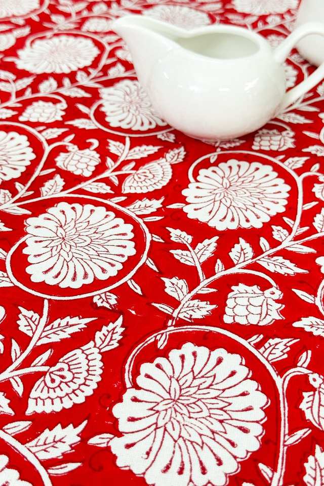ผ้าปูโต๊ะทรงกลมลายดอกไม้สีแดง ผ้าฝ้าย 100% พิมพ์ลายด้วยมือ เหมาะสำหรับงานแต่งงาน งานเลี้ยง และใช้ในชีวิตประจำวัน