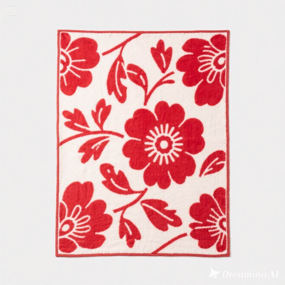ผ้าห่มขนแกะเนื้อนุ่มลายดอกไม้สีแดงขนาดควีนไซส์พิมพ์ลายอบอุ่น