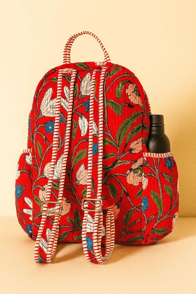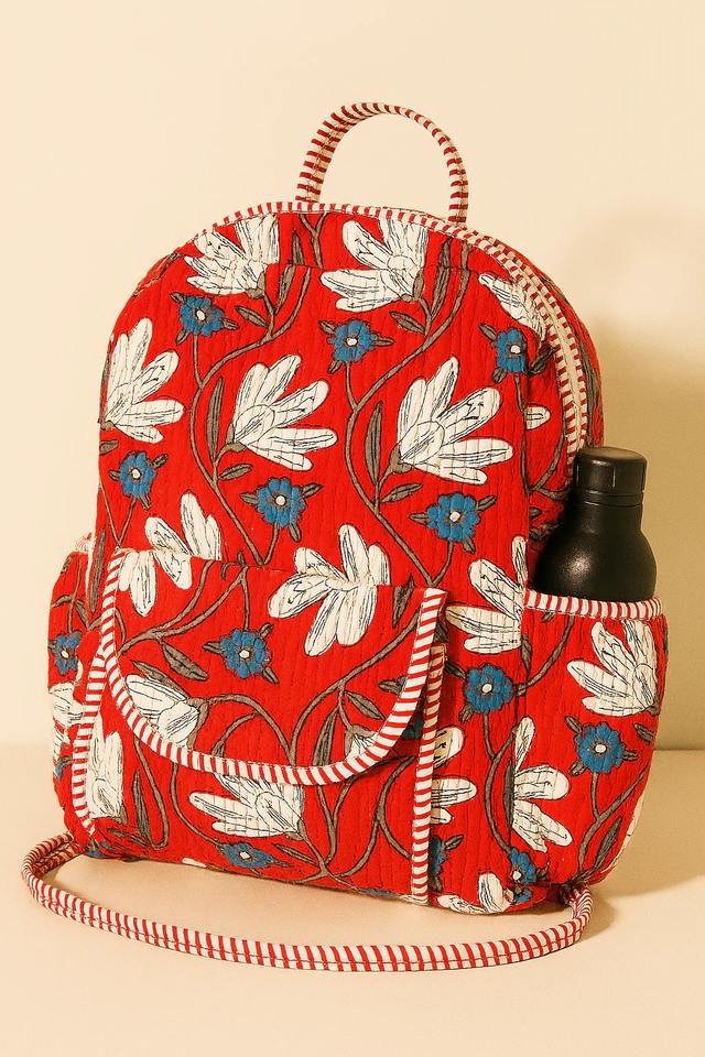กระเป๋าเป้สะพายหลังผ้าฝ้ายออร์แกนิคทำมือลายดอกไม้สีแดง น้ำหนักเบา มีซิป ความจุขนาดใหญ่ 10 กก. สำหรับทุกเพศ
