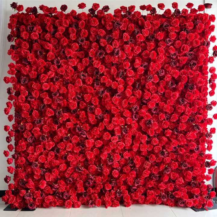 ผนังดอกไม้สีแดง 3 มิติ 5 มิติ ผ้าม้วนตกแต่งผนังดอกกุหลาบผ้าไหมเทียม ฉากหลังสำหรับตกแต่งเวทีงานแต่งงาน