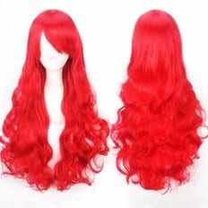 Red Full-Length Women's Wigs with Long Hair High Quality Heat Resistant Synthetic Lace Fiber WFI0N37