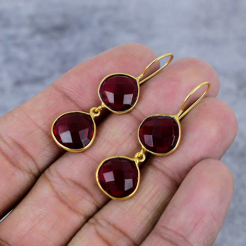 ต่างหูรูปหัวใจประดับพลอยโกเมนสีแดง ชุบทองคำขาว 925 พร้อมสายคล้อง ต่างหูสำหรับงานปาร์ตี้ ของขวัญสำหรับเธอ