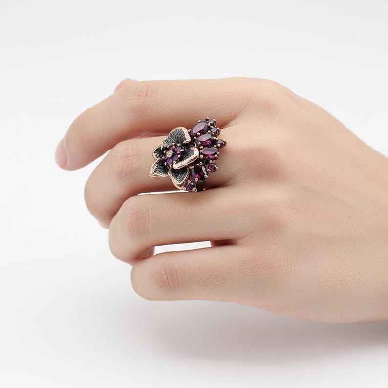 Keyword:Red Garnet Flower Ring Designed For Romantic Floral Wear