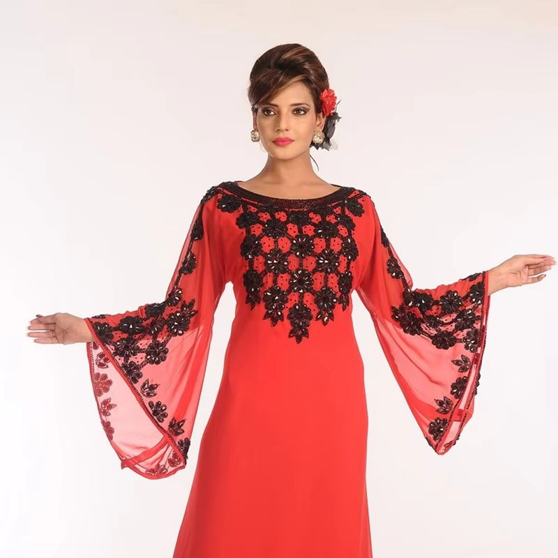 ผ้าจอร์เจียแบบอิสลามปักเย็บสีแดง