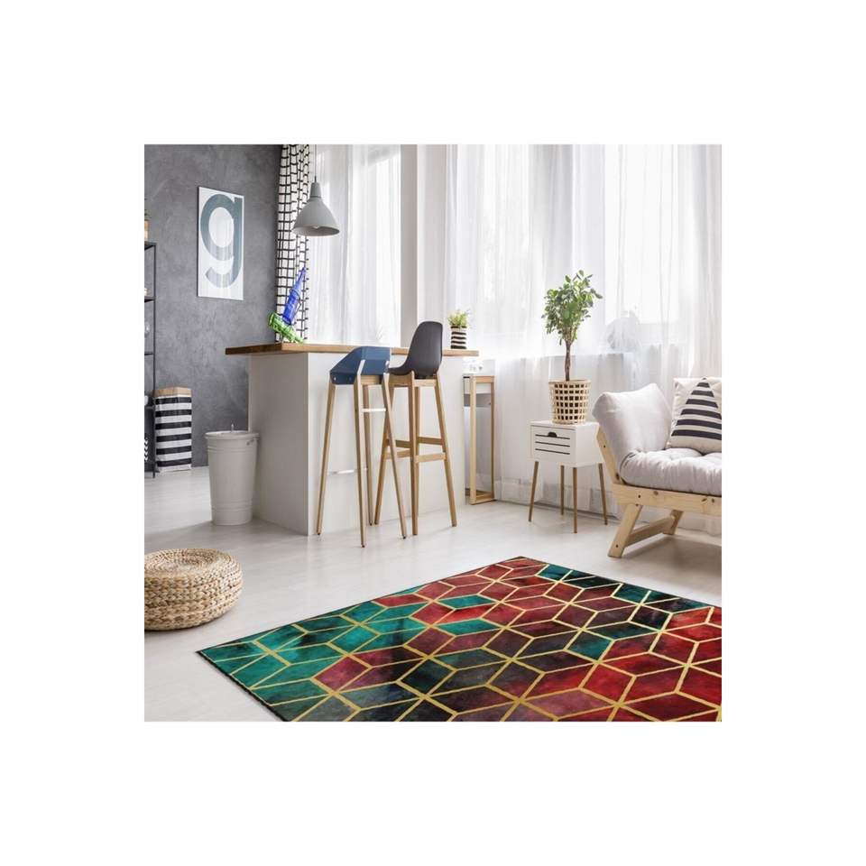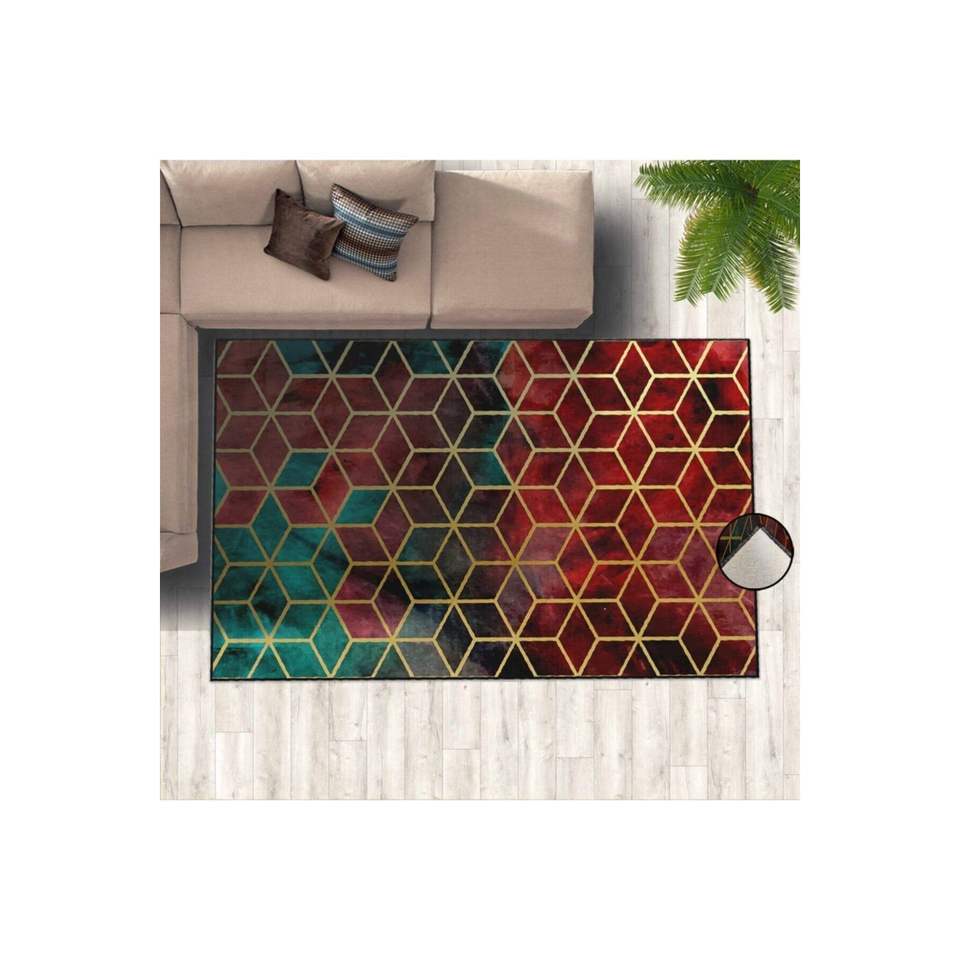พรมพิมพ์ดิจิตอลลายรังผึ้งสีแดงทองพรมปูพื้นและชุดพรม