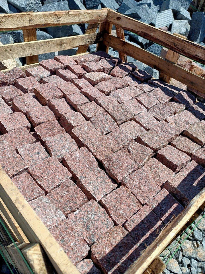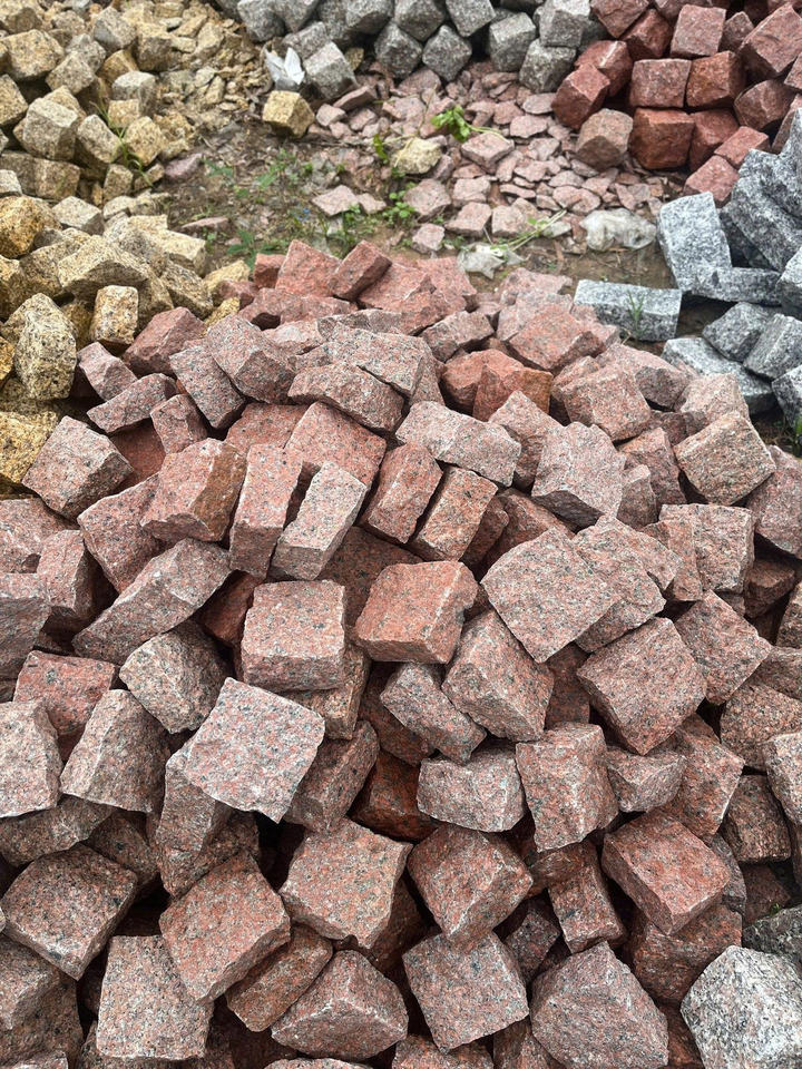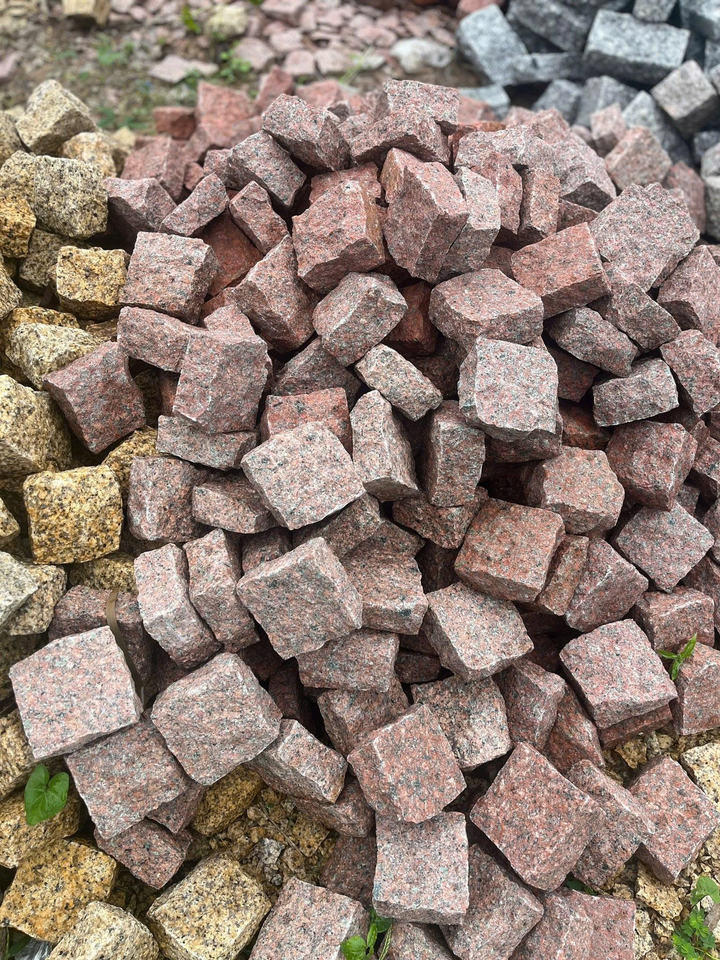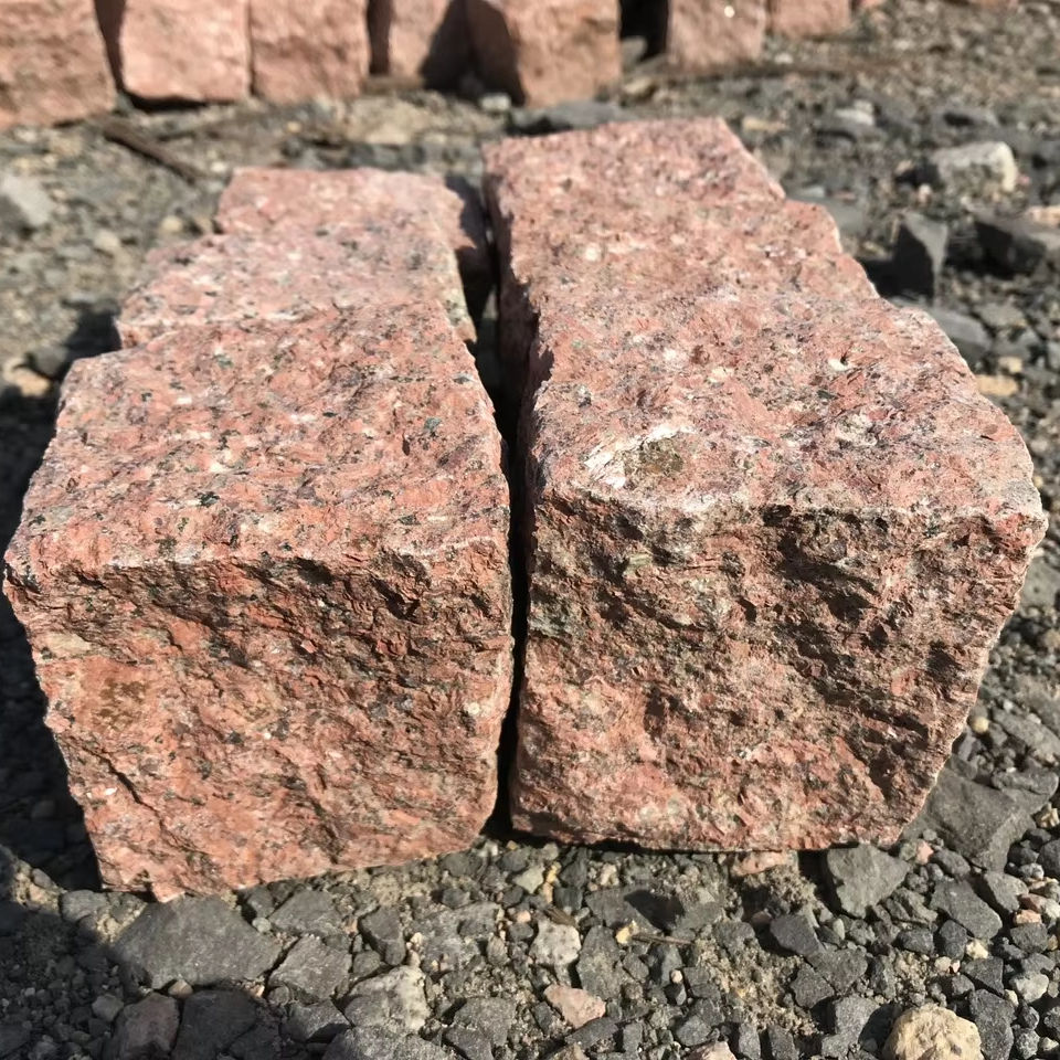 หินแกรนิตสีแดงทรงลูกบาศก์สำหรับปูพื้น หินกรวดธรรมชาติสำหรับทางเดิน ถนน ลานบ้าน และพื้นที่กลางแจ้ง