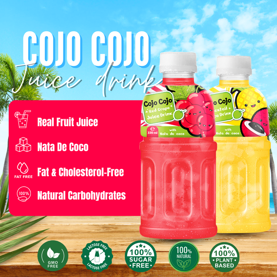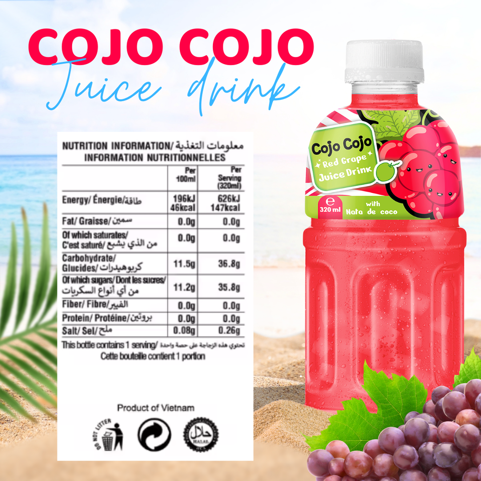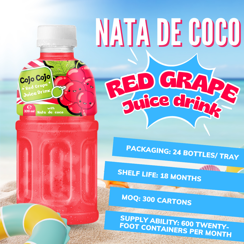 เครื่องดื่มน้ำผลไม้320มล. องุ่นแดง Nata de COCO cojo เครื่องดื่มขายส่งราคาตัวอย่างฟรี OEM ODM ปรับแต่งได้
