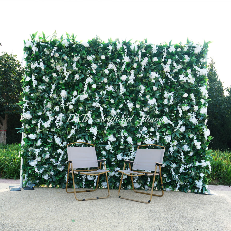 ดอกไม้ประดิษฐ์สีแดงสีเขียวสีม่วงผนังผ้าจำลองพื้นหลังแต่งงานสำหรับตกแต่งผนังเวทีแต่งงาน