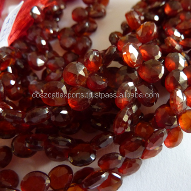 Hessonite สีแดงโกเมน Briolette หัวหอมลูกปัดจากชัยปุระ
