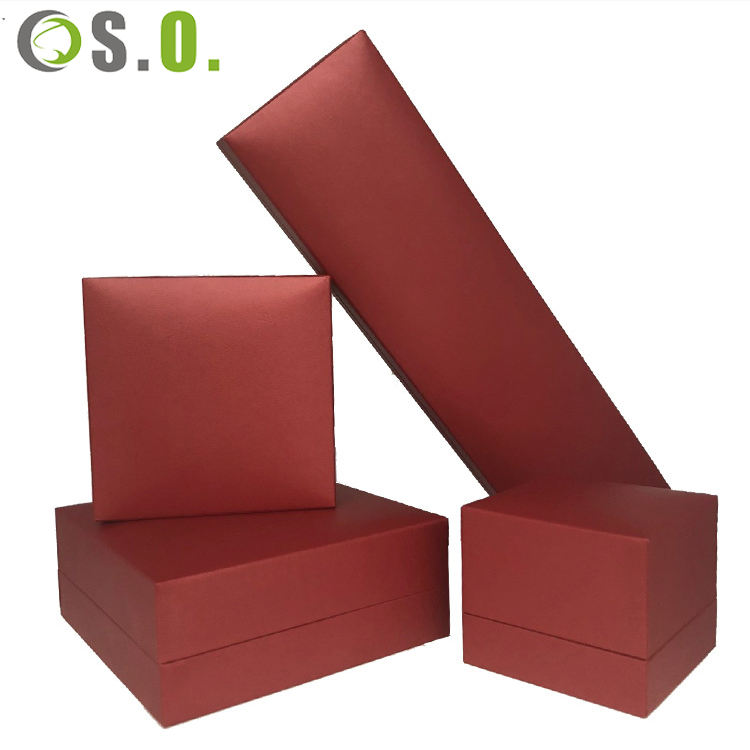 กล่องใส่เครื่องประดับงานแต่งงานแบบกำหนดเอง ทำจากกระดาษหนังเทียมคุณภาพสูงสีแดง ขายส่ง