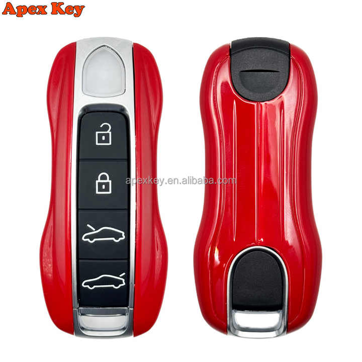 เคสกุญแจสำรองสีแดงคุณภาพสูงสวยงามสำหรับรถปอร์เช่ พร้อมสติกเกอร์สำหรับทำกรอบรูปศิลปะ