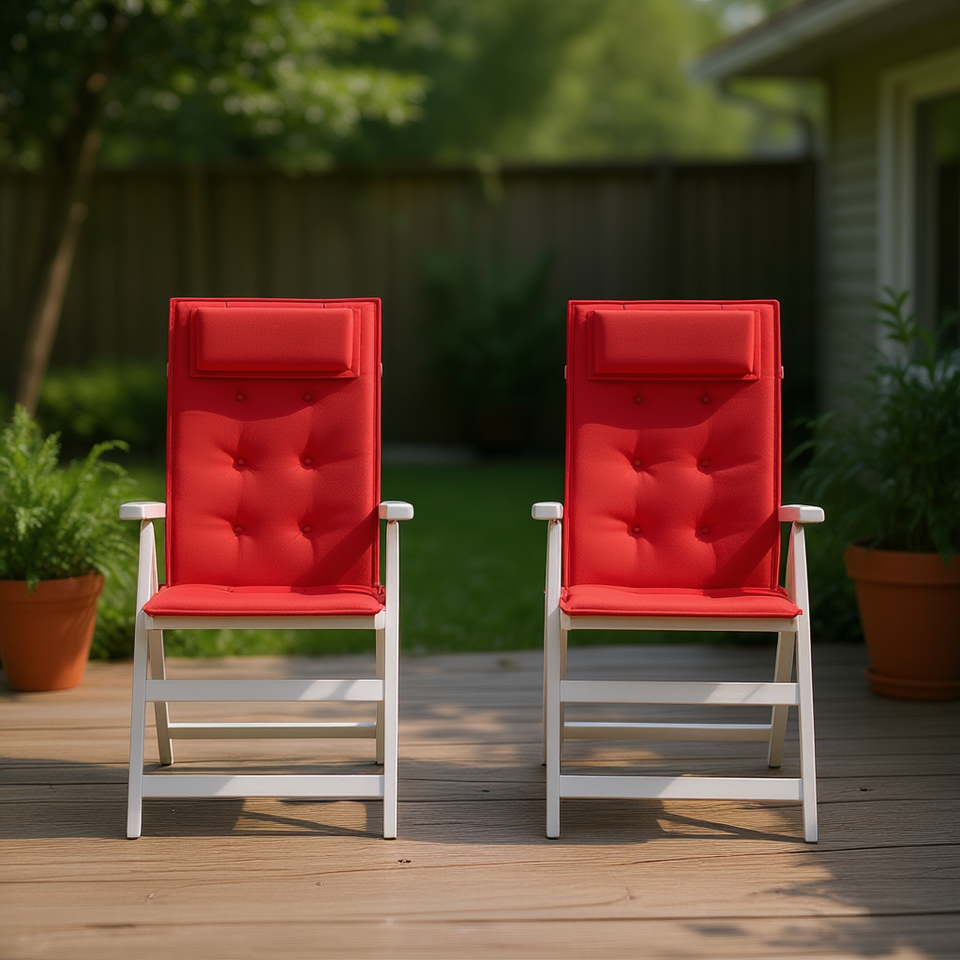 เบาะรองนั่งเก้าอี้พนักพิงสูงสีแดง ชุดเบาะรองนั่งและหมอนรองหลังโพลีเอสเตอร์ 2 ชิ้น ถอดซักได้ ดีไซน์ลายควิลท์สีพื้น