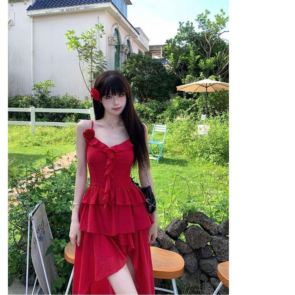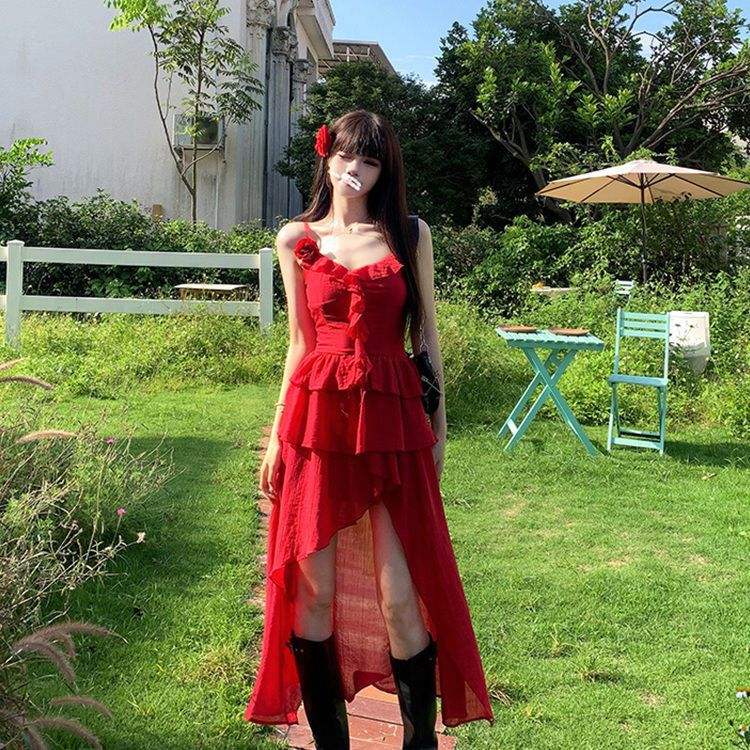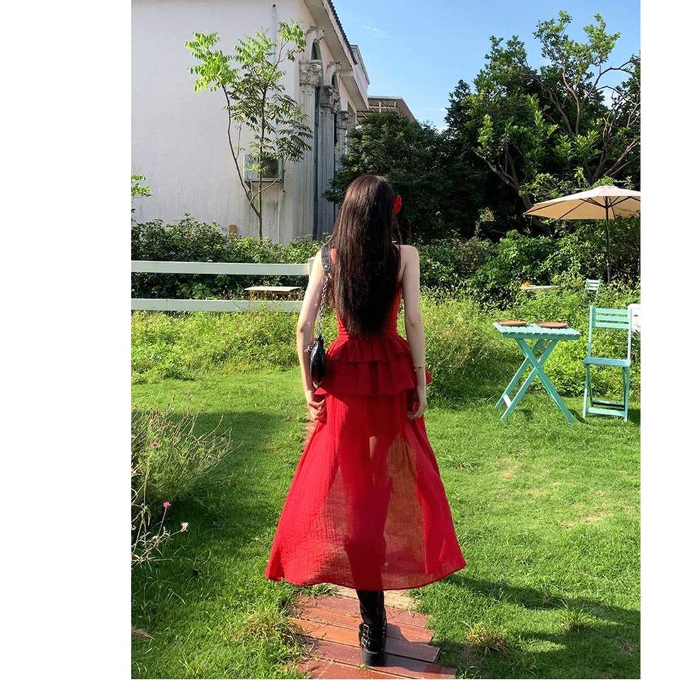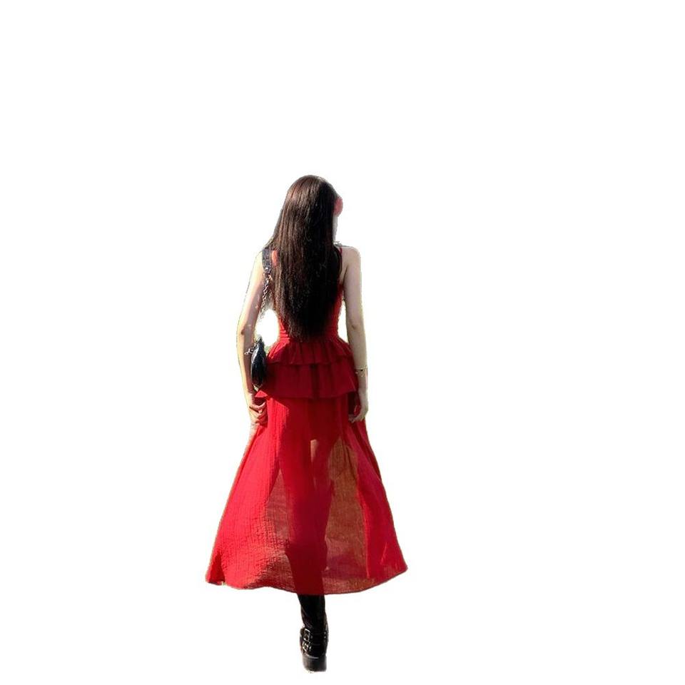 ชุดคลุมชายหาดทรงเอไลน์ คอวี สีพื้น ผ้าโพลีเอสเตอร์ แห้งเร็ว สายรัดสีแดงแบบไม่สม่ำเสมอ สำหรับผู้หญิง