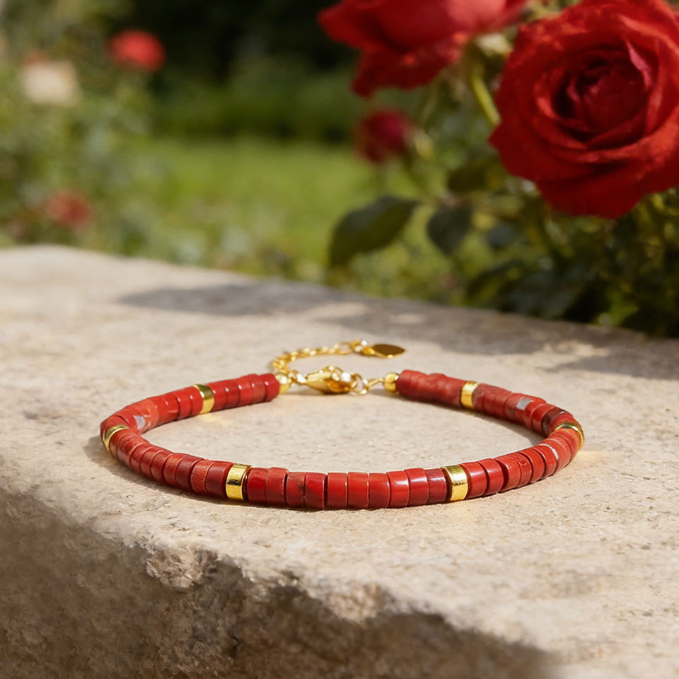 กำไลข้อมือลูกปัดคริสตัลแจสเปอร์สีแดงสำหรับผู้หญิง ช่วยบำบัดรักษา ป้องกันภัย รีกิ แฟชั่นทันสมัย ปรับขนาดได้ เครื่องประดับแบบเรียงซ้อน ของขวัญวันเกิด