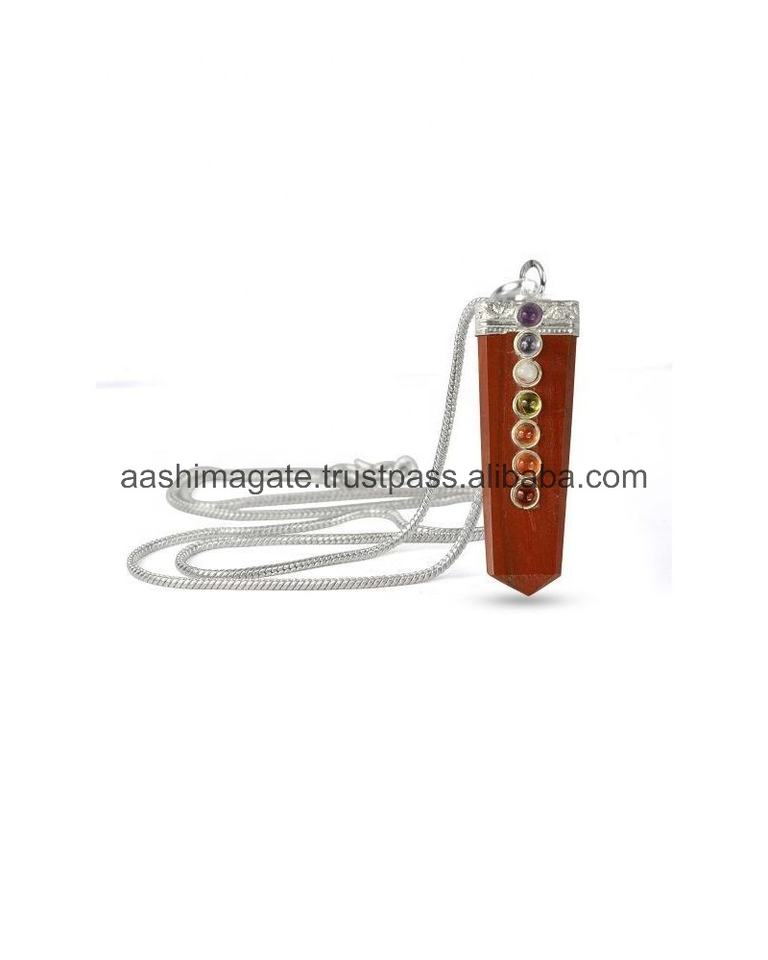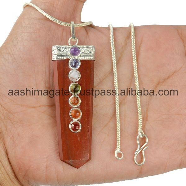 Sier แจสเปอร์สีแดงแฮนด์เมดแบบแท่งแบน7เม็ดจักระคริสตัลมาสคอตหินโมราจี้หินฮวงจุ้ยขัดเงา