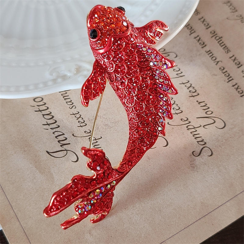 เข็มกลัดปลาคาร์พรูปปลาคราฟสีแดงเข็มกลัดปลาสีทองพร้อมคริสตัลหรูหราเข็มกลัดรูปสัตว์แนววินเทจสำหรับผู้ชายของขวัญแฟนหนุ่ม