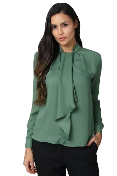 เสื้อเบลาส์ผู้หญิงสไตล์วินเทจ ผ้าทอลายดอกไม้ แขนยาว แต่งระบาย ผูกเชือก แต่งกระดุม สีแดง