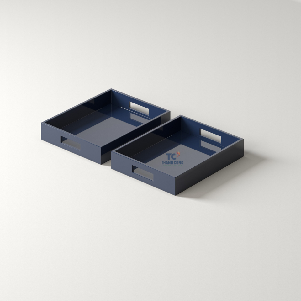 ถาดแลคเกอร์สีแดงถาดสำหรับตกแต่งทรงหอยเชลล์เคลือบสีดำขนาดใหญ่ทำมือหรูหรา
