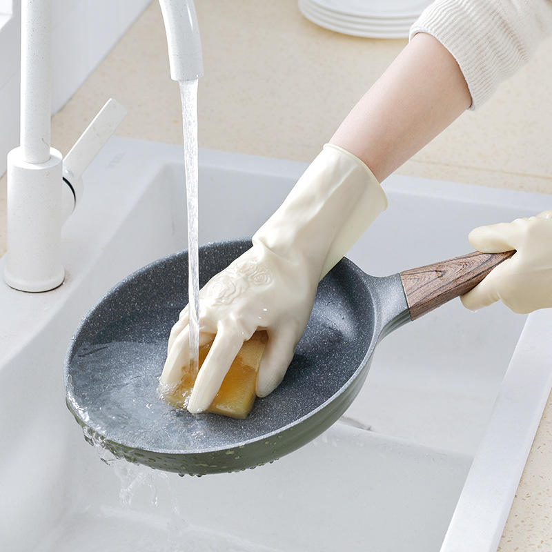 ถุงมือยางลาเท็กซ์สีแดง 26 ซม. หนา กันน้ำ สำหรับทำความสะอาดในครัวเรือน ถุงมือล้างจาน สีทึบ