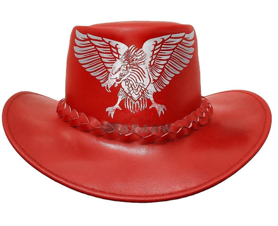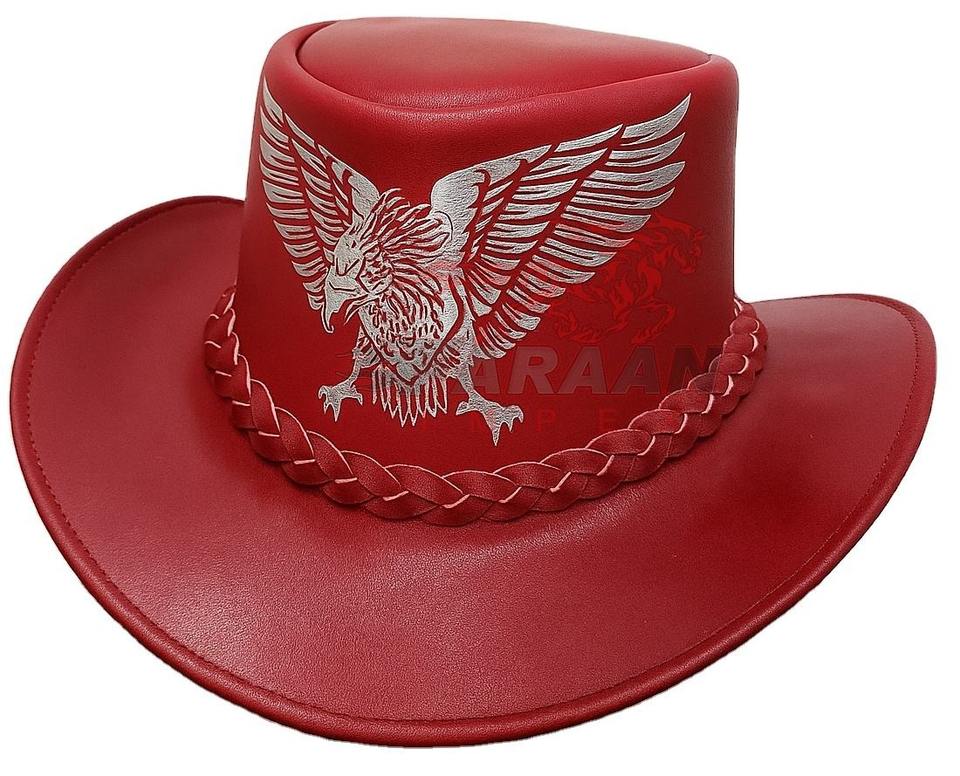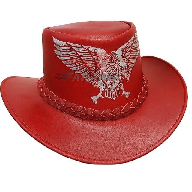 หมวกคาวบอยหนังสีแดง ลายอินทรีนูน ขายส่ง หมวกคาวบอยสไตล์ตะวันตก หมวกคาวบอยคลาสสิก รับผลิตตามแบบ (OEM)