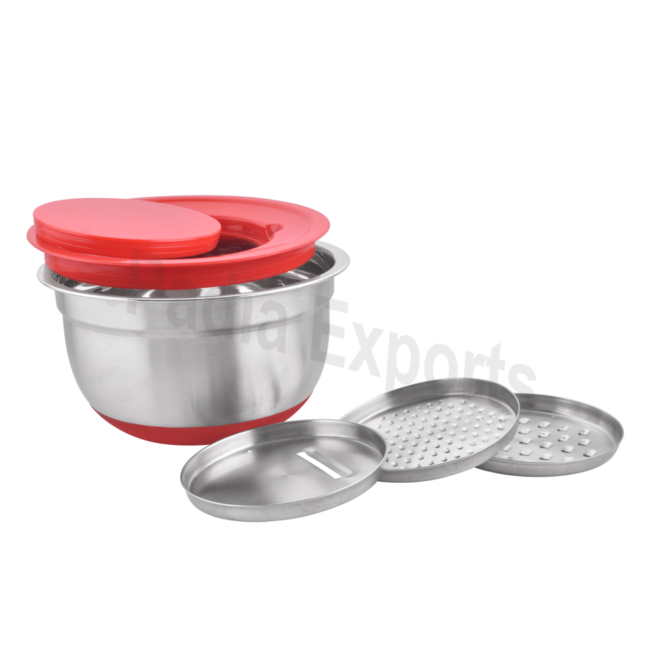 ชามสลัดฝาสีแดงชามโลหะเคลือบเงาหรูหราสำหรับรับประทานอาหารและสนุกสนาน