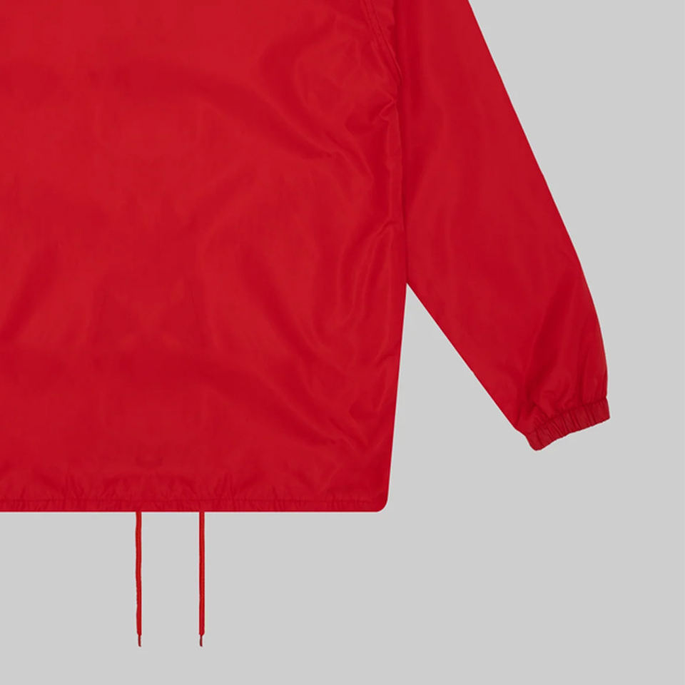 เสื้อโค้ทผ้าไนลอนสีแดงน้ำหนักเบามีกระดุมด้านหน้าและชายเสื้อปรับได้
