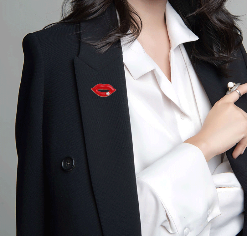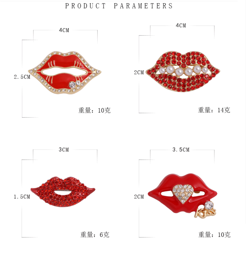 เข็มกลัดชุบทองรูปริมฝีปากแดงสำหรับเสื้อผ้าสตรีและช่อดอกไม้สำหรับงานแต่งงานงานหมั้น