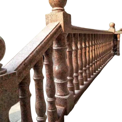 ราวบันไดหินอ่อนสีแดงลูกกรงหินหินอ่อนสำหรับตกแต่งบ้าน